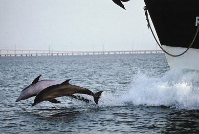 The sounds that animals, including cetaceans and pinnipeds, make to communicate. There is a multitude of different sounds used during vocalisations, such as clicks, whistles, pulses, whirrs, grunts, and “song”. Clicks and pulses are generally used in echolocation, while whistles are thought to be used for communication within a group of dolphins. Baleen whales use low frequency songs to communicate over hundreds of kilometres.