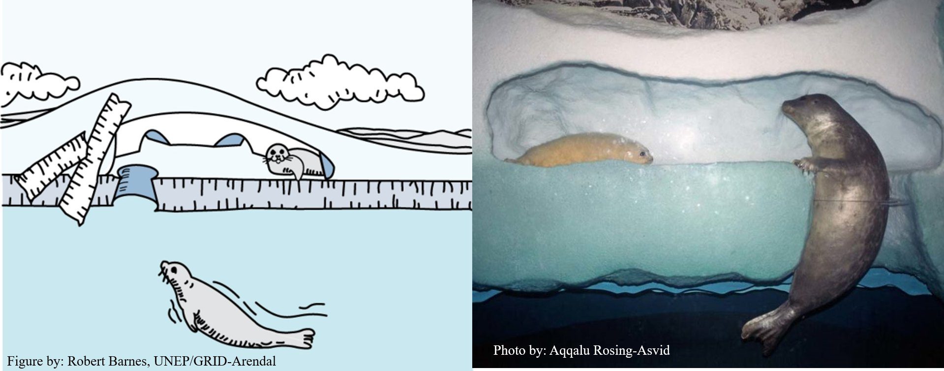 Areas where male and female marine mammals gather for mating, and where females give birth and nurse their calves. For seals and walruses, this always takes place on land or ice. Each species’ breeding season depends on its life cycle.