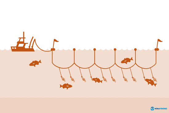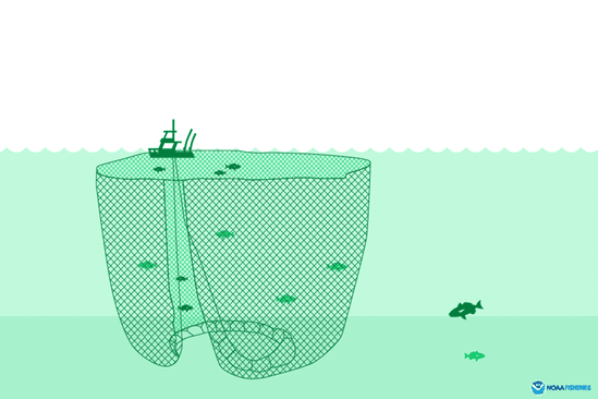 Using a type of trawl that is dragged along the sea floor to collect benthic species. Because the net is weighted down with heavy beams, this fishing method often breaks or crushes plants and animals that are attached to the seabed.