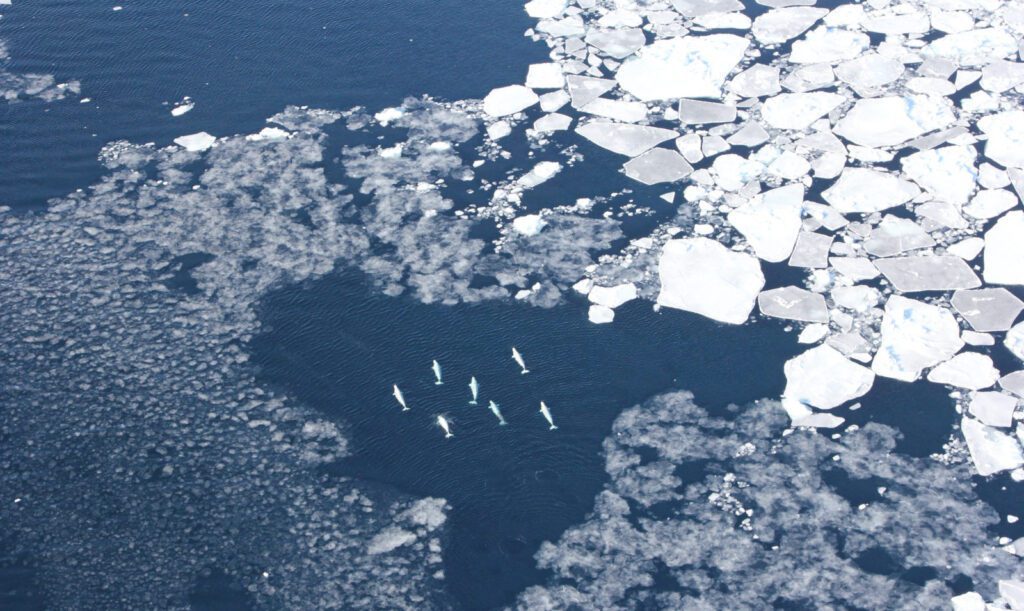 - While ice-dependent species (such as bearded seals and narwhals) will be severely negatively impacted, migrating sub-Arctic species (such as fin whales) might be positively impacted as they may be able to expand further north to a wider geographical area [e.g., 2, 3].