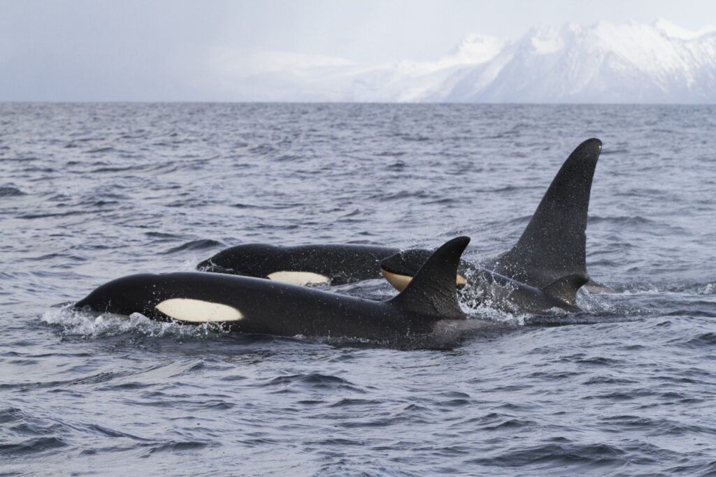 Killer whales are highly social animals, living in complex societies that have enabled different ecotypes to develop distinct “languages”, cultures, lifestyles, and even genomes. While the structure of the pods and the bonds between individuals can vary from one group to another, orcas typically live in pods ranging from a few to over 20 individuals, often spanning three to four related generations. These societies are matriarchal, with the oldest female serving as the pod‘s leader.