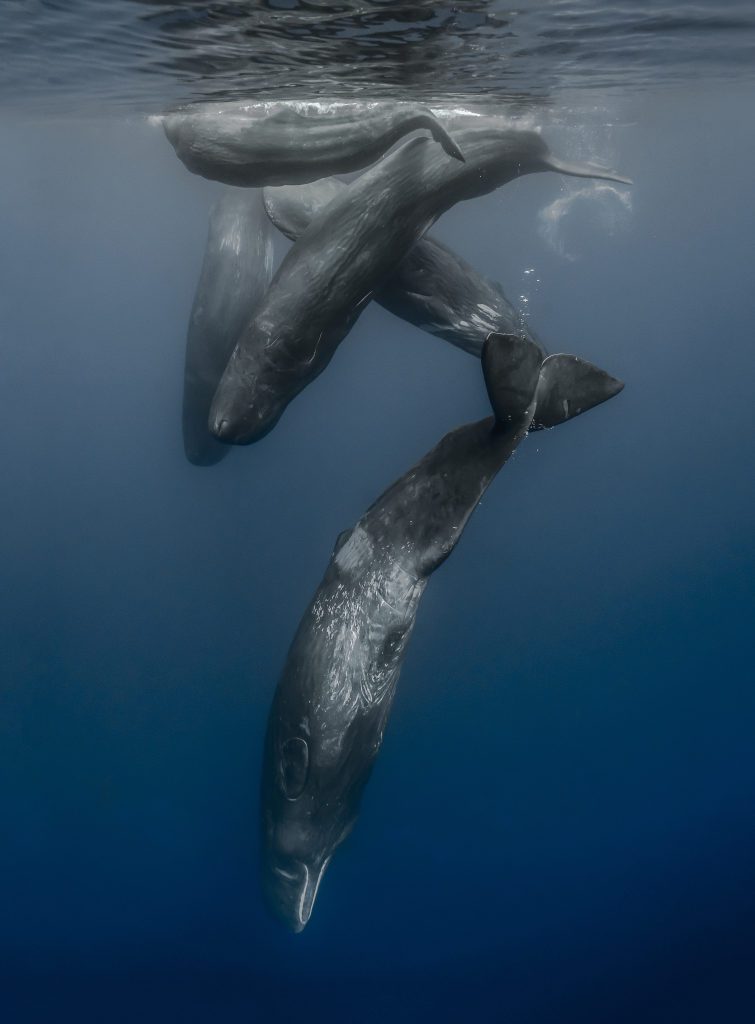 Sperm whales communicate using socially learned patterns of clicks, so called codas, which can vary in number of clicks, rhythm and tempo, thus generating different coda types. Based on variations of coda types, also called dialects, sperm whale populations are divided into behaviorally distinct clans. Within these clans, sperm whales in the Pacific Ocean make distinct vocalizations that help them identify whales in different clans. These “identity codas” are seen as symbolic markers—seemingly arbitrary traits that function as indicators of cultural group membership to others. For example, you wear a t-shirt of your favorite band, then you show everyone in which group you belong, and everyone can identify you as a member of it. Moreover, identity codas were used more often when multiple clans were present and less observed when a clan was isolated. Meaning sperm whales adjust their vocal behavior to reaffirm their cultural identity in areas of high spatial overlap. Identity codas function as symbolic markers of clan identity and prove the existence of whale culture because they are shared among clan members, learned and passed down through generations via social learning. The study by Hersh et al. classified 23,429 codas collected from 23 locations in the Pacific Ocean from 1978-2017. The researchers were able to name 3 additional clans to the already 4 known in the Pacific Ocean.