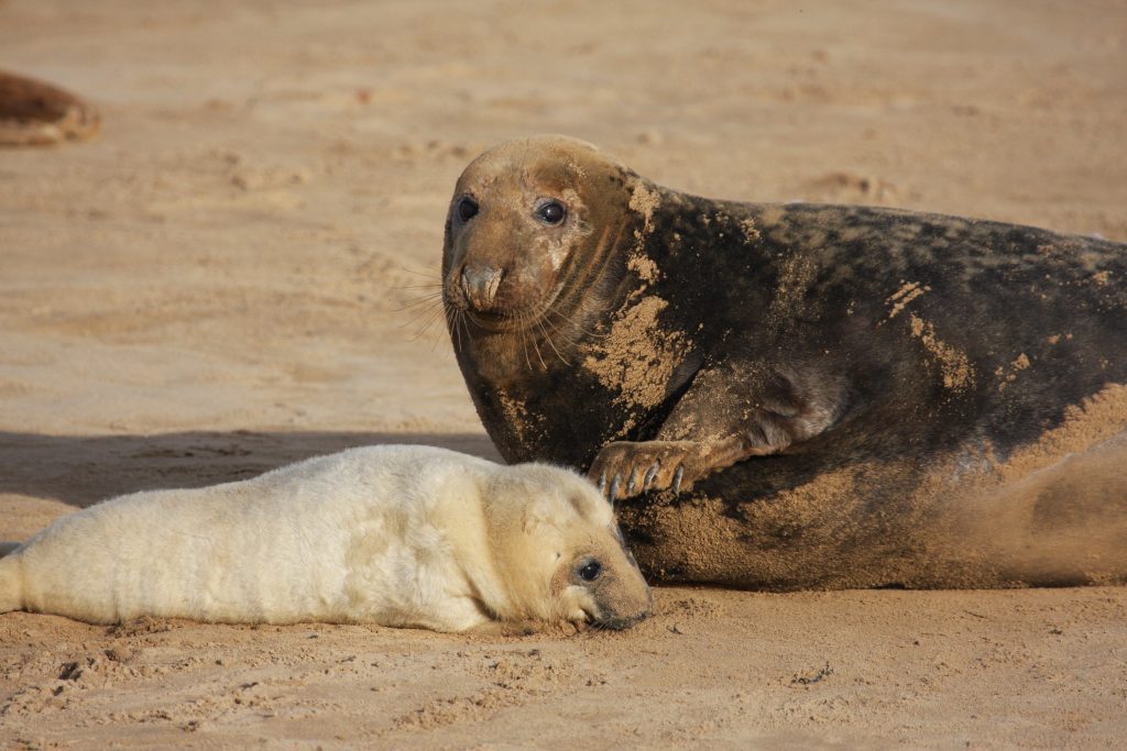 Since they are marine mammals and breathe air, they need to keep their heads above the water. They achieve this in two ways: either lying horizontally with their heads (noses) and backs above the water, known as “logging”, or floating vertically with just their heads above the water, known as “bottling”. When they do this, they somewhat resemble a buoy. Resting in these positions allows them to stay in the open water for longer periods, enabling them to search for food farther away from shore without needing to swim back each time they need rest.